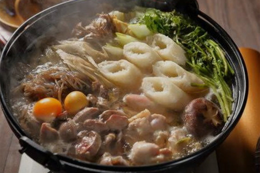地鶏の出汁が効いた汁とキノコや旬の野菜と一緒に煮込んだ秋田の郷土料理。