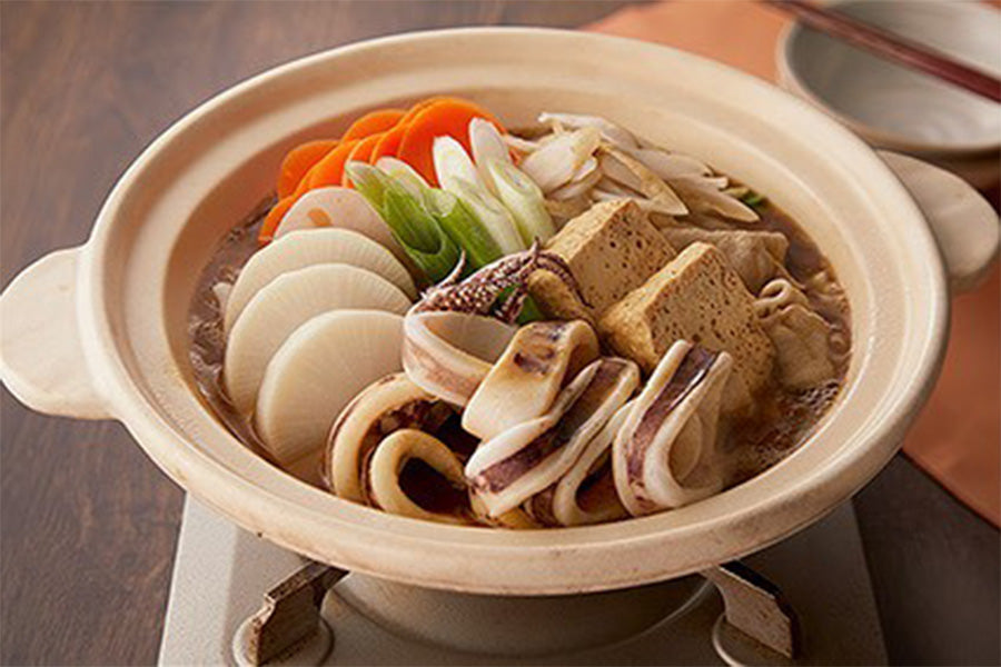 番屋で漁を終えた漁師が体を温めるために食べた漁師飯。県産のするめいかをたっぷり使用。